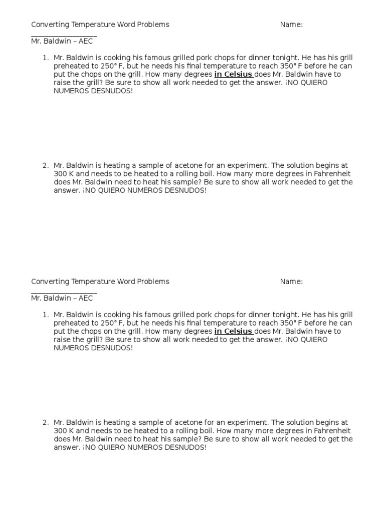 Temperature Conversion Word Problems PDF Fahrenheit Meteorology